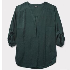 TORRID SIZE 5 HARPER SATIN PULLOVER 3/4 SLEEVE BLOUSE GREEN