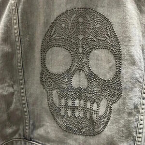 TORRID SKULL STUDDED CROPPED JEAN VEST JACKET 0