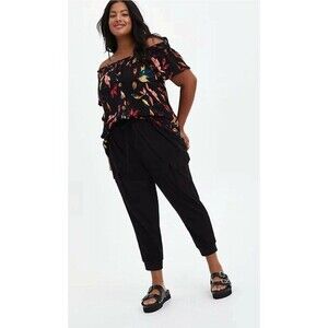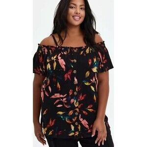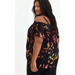 TORRID SMOCKED COLD-SHOULDER BLOUSE GAUZE LEAF BLACK PLUS SIZE 5x