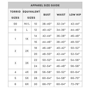 SIZE 4 (4X / 26) Runs true to Torrids generous plus sizing