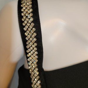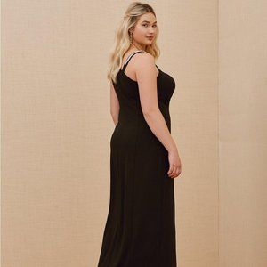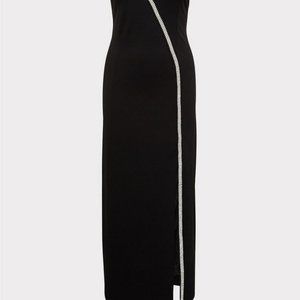 TORRID SPECIAL OCCASION BLACK CREPE RHINESTONE SLIT GOWN, SIZE: 16
