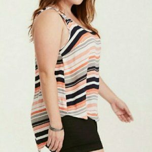 We're totally on that stripe tip this season. This lightweight tank beautifully mixes teal, black, and white to create one refreshing number. This semi-sheer style is finished with a front pocket and is ready to bring a lively touch to your look.