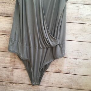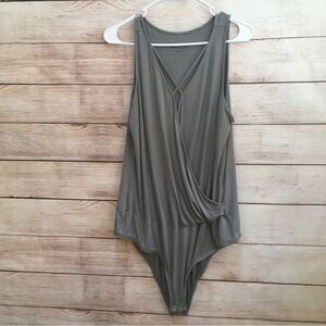 EXCELLENT CONDITION TORRID SUPER SOFT KNITS SURPLICE STRAPPY BODYSUIT IN GRAY