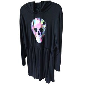 TORRID SUPER SOFT BLACK HOODED SKULL PRINT PLUS SIZE SKATER DRESS SIZE SIZE 2X