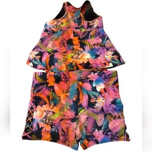 TORRID SWIM LEAFY RACERBACK TANKINI AND LEAFY HIGH RISE SHORTS SIZE 4