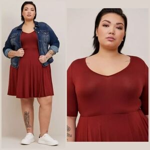 TORRID Short Sleeve Super Soft Knit Mini Skater V-neck Dress, Side Pockets