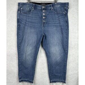 TORRID Sky High Skinny Crop Distressed Jeans Womens Plus Size 26 Blue Raw Hem
