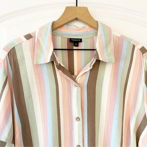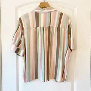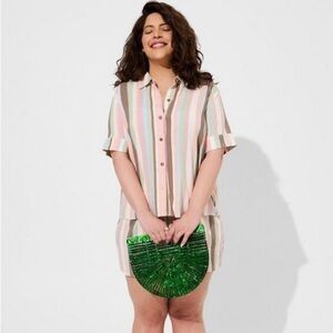 TORRID Slub Button Up Striped Short Sleeve Beach Shirt