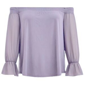TORRID Smocked Off Shoulder Sheer Top Size 4X Grey Long Sleeves Balletc…