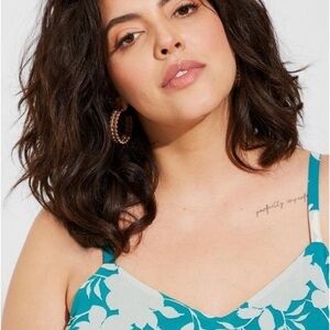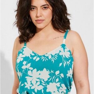 TORRID Sophie Teal Leaf Chiffon Double Layer Swing Cami Top Plus Size 6 6X NEW