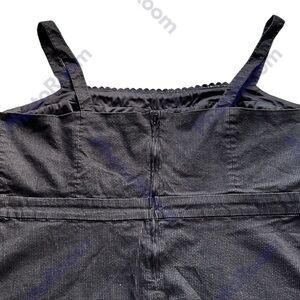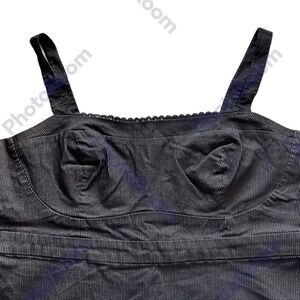 Sexy with a girlish flair, this black pinstriped tank is a perfect way to get dolled up. Features picot trim at the neckline and back zip entry.