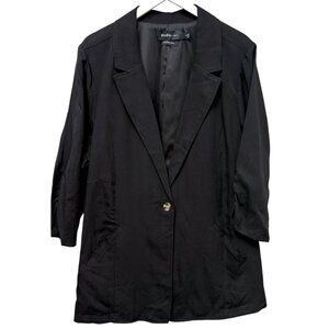 TORRID Studio Boyfriend Blazer Plus Size 3X Black Linen Lyocell Relaxed Jacket