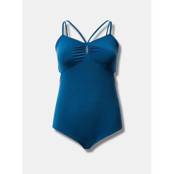 TORRID Studio Knit Sweetheart Strappy Cut Out Bodysuit blue.