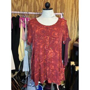 TORRID Super Soft RED Button-Front Seamed Top Short Sleeve Stretch Sz 1 (1X)