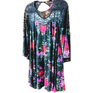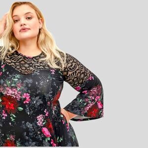 TORRID Super soft black floral lace bell sleeve dress. Size M/L