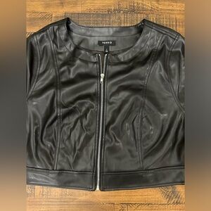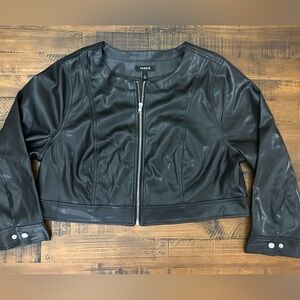 TORRID Sz 2 Soft Black Vegan Faux Leather Cropped Jacket No collar Full Zip