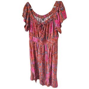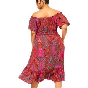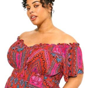 TORRID TEA LENGTH boho challis off shoulder peasent dress 2X