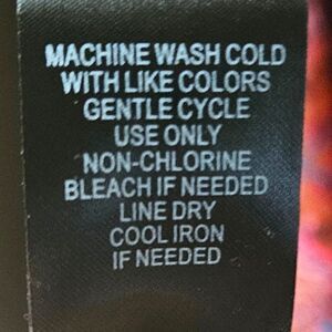 :Machine wash cold with like colors gentle cycle use only non-chlorine bleach if needed. line dry cool iron if needed.