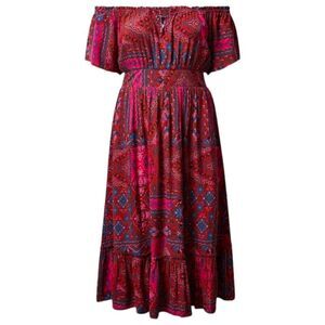 TORRID TEA LENGTH Challis Off Shoulder Peasent dress.