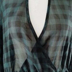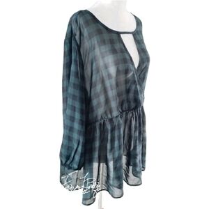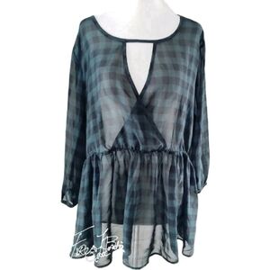 TORRID TEAL BLACK PEPLUM SEMI SHEER BLOUSE TOP SZ 0X 12 PLUS