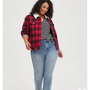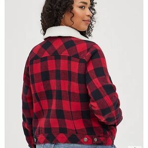 TORRID TRUCKER COAT - BUFFALO PLAID RED TORRID SIZE 3