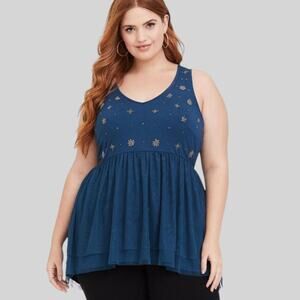 TORRID Teal Green Embellished Babydoll Top Coquette Double Mesh Beaded 2X