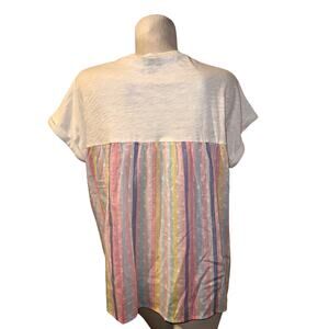 This TORRID top is a must-have for any fashion-savvy woman. The crew neck and pullover closure make it easy to wear, while the lightweight, stretchy, and breathable fabric ensures comfort all day long. The mixed fabric type and colorful, classic theme add a touch of style to any outfit, making it perfect for travel or casual occasions in summer, fall, or spring. The short-sleeved tee is machine washable, and the cotton and 100% cotton material make it easy to care for. The top is a regular fit and size L-12 (0), making it suitable for most women. Don't miss out on this colorful and classic piece from TORRID.