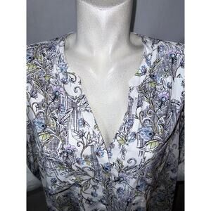 The TORRID Women's Size 2X Floral Harper Georgette Pullover Blouse features a V-neckline, 3/4 sleeves with roll tab accents, and a vibrant multicolor floral pattern perfect for summer, fall, and spring. Made from lightweight polyester fabric, this blouse is easy to care for with machine washable instructions. Ideal for travel, parties, casual outings, or business meetings, this blouse from Torrid offers a comfortable and stylish fit for plus size women looking for a classic and colorful addition to their wardrobe.