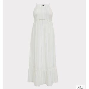 TORRID WHITE STRIPE GAUZE SHIRRED HEM MAXI DRESS