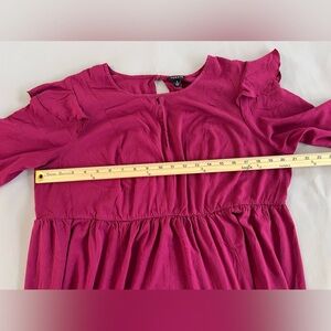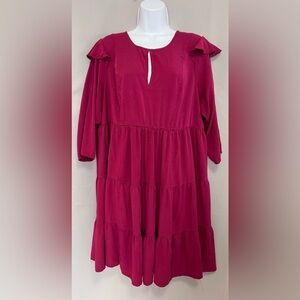 Elevate your wardrobe with this stunning Torrid wine challis trampoline dress. The dress features a button closure, layered accents, and a knee-length cut that makes it perfect for any bohemian-themed event. It comes in a 2XL size, making it ideal for plus-sized women. The dress is made of spandex material and is lined for added comfort.
