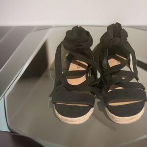 TORRID WOMEN’S SIZE 7.5 WW STRAPPY FLATFORM SANDAL - FAUX SUEDE BLACK