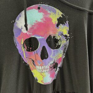 Featured Item: TORRID Women Skull Mini Dress Black Hood Pockets Tunic Skater pockets. hood. stretch. elastic waist