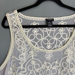 TORRID Women's 3X Sleeveless White Cream Lace Beaded Transparent Blouse Classic