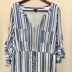 TORRID Women’s Blue & White Stripe Zip Front Drawstring Shirt Dress Size 6X