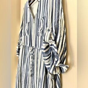 TORRID Women’s Blue & White Stripe Zip Front Drawstring Shirt Dress Size 6X