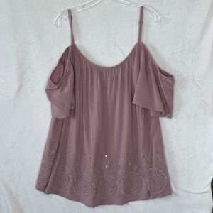 TORRID Women's Challis Eyelet Border Cold Shoulder Blouse Elderberry Size 4X