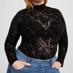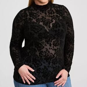 TORRID Women's Flocked Mesh Mock Neck Long Sleeve Top 1(14-16) Plus Size NWT