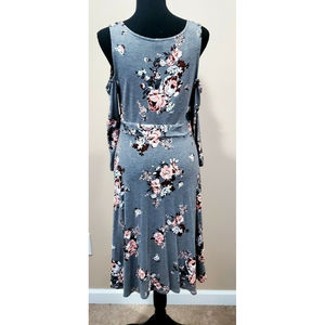 TORRID COLD SHOULDER JERSEY DRESS - FLORAL Gray Sz 00 EUC.