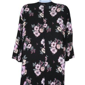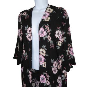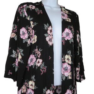 TORRID Womens Mid Length Floral Black Kimono Small Cover Up Open Front Duster