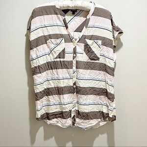 TORRID Women’s Plus Multi Stripe CHALLIS Short Sleeve Dolman Button Front Top Size 2X. Good pre-owned condition. Gentle signs of wear. No stains or holes. All measurements are approximate.