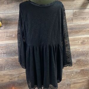 TORRID Womens Plus Size Black Lace BabyDoll Flare Long Sleeves Blouse Size 3
