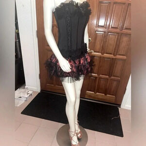 TORRID Womens Size 1 Sweetheart neckline Black Lace Ruffle Corset Strapless Hook & Eye Closure Boned