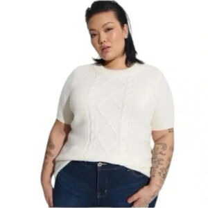 TORRID | Women’s White Chunky Knit Drop Shoulder Short Sleeve Pullover Size 3