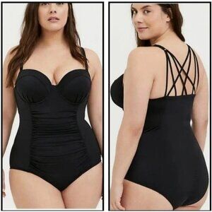 TORRID black strappy push up swimsuit one piece women's plus 3X removeable pads