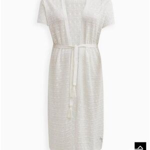 Brand new with tags from torrid! This short sleeved cream crochet duster tie waist sweater is a cotton and acrylic blend. Open neckline, great layering option! Torrid size 1/2, plus size 14/20.