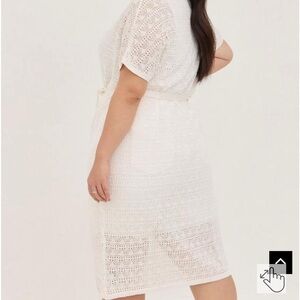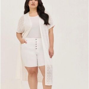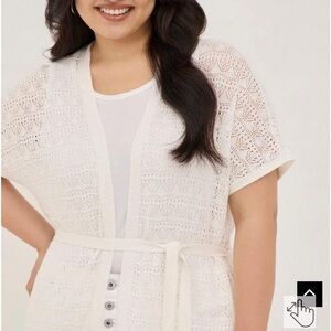 TORRID cream Crochet Duster Short Sleeve Tie Waist Sweater