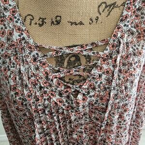 TORRID floral cottage laced front peasant boho bell sleeve blouse plus size 1X