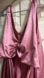 Super cute fun satin pink dress goes just above the knees. little peekaboo in the front that’s what the slit is! Room for busty girls!!!!!