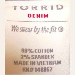 TORRID Plus Size 24= 3X Waist: 47" but has stretch. Inseam: 5" & Hips: 46" Length: 14.5". All measurements are Approximate and taken laying flat. Black & White distressed,frayed hem, denim shorts.