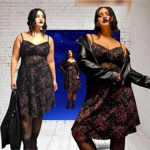 TORRIDโNEW Nightfall Fit & Flare Cami Lace Berry Moon Mini Dress 2X